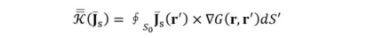 _k_0 is the wavenumber. G(r,r') represents Green's function. In the MFIE, the second multiplier of the second term on the left of the equation can be expressed as: