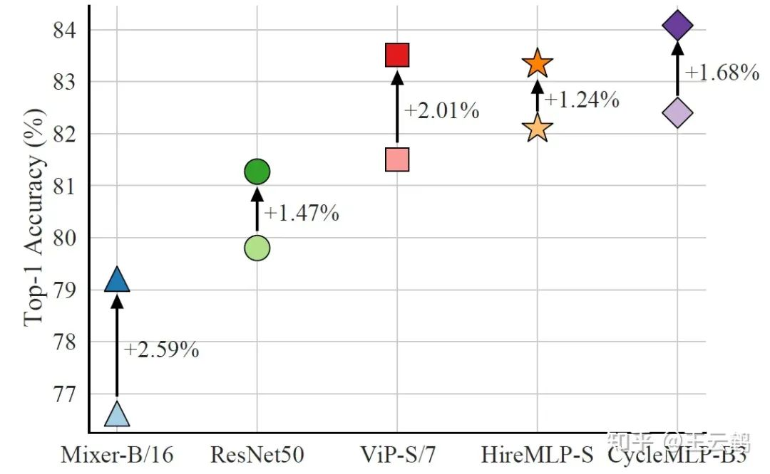 This blog also compares the KD result of the MLP student model. BEiT v2-base of the ViT architecture is selected as the teacher model. The medium-sized CycleMLP-B3 model refreshes the best result of the MLP model on ImageNet.