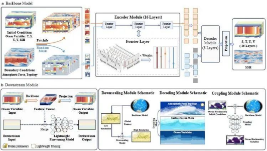 Weather and ocean are deeply interconnected. The heat exchange between ocean circulation and atmosphere has a great impact on weather changes. Currently, a large number of AI models have demonstrated their accuracy in medium-range weather forecasting, for example, GraphCast[1] and Pangu-Weather[2]. In terms of nowcasting, DeepMind took the first step to use generative models for rainfall forecasting[3], while Long Mingsheng's team from Tsinghua University proposed NowcastNet[4] with physical mechanisms. We believe that the ocean will be the next arena for AI in the meteorological field. Recently, Huang Xiaomeng's team from Tsinghua University worked with Huawei Advanced Computing and Storage Laboratory and proposed AI-GOMS[5], a pioneering ocean-based foundation model.