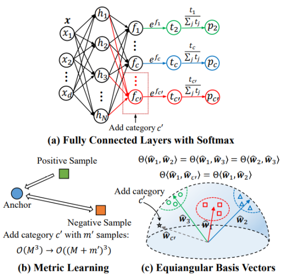 1. A general classifier ends with k-way fully connected layer and softmax. When categories are added, the trainable parameters of the classifier increase linearly.