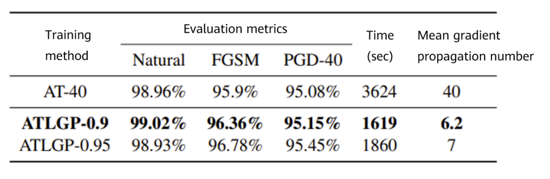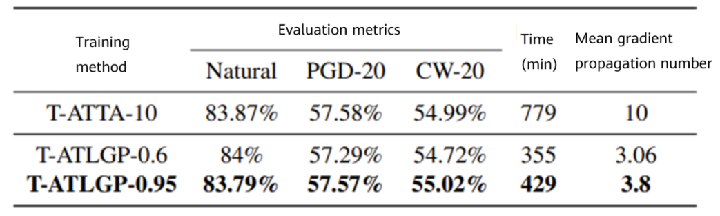In this paper, ATLGP is proposed and verified its high adversarial accuracy and good acceleration effect through the experiments on three public datasets. The acceleration effect of ATLGP further proves the rationality of loss function guidance. In addition, ATLGP has good generalization ability and can be easily combined with ATTA to provide advanced acceleration performance with high adversarial accuracy. ATLGP fully considers the difference of adversarial attributes among training instance, and introduces a threshold β to quantitatively describe the local optimal solution of the inner maximization problem. Difference of adversarial attributes may exist widely in different datasets. The more complex the data distribution is, the more obvious the adversarial differences are, for example, from MNIST to ImageNet. Based on this, we can speculate that ATLGP will also have good acceleration performance on more complex datasets.