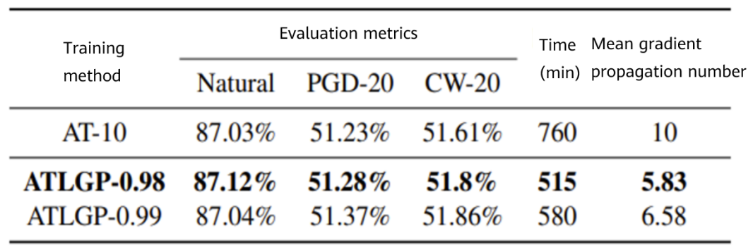 Figure 3 Performance comparison between AT and ATLGP on CIFAR10