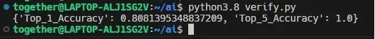 As shown in the preceding figure, Top_1_Accuracy is 0.8081 and Top_5_Accuracy is 1.0, indicating that the model has excellent accuracy.