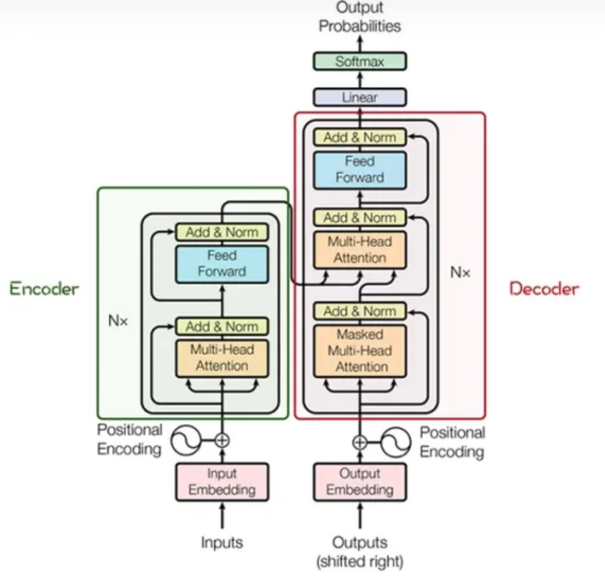 The encoder and decoder consist of many modules, such as the Multi-Head Attention layer, Feed Forward layer, Normalization layer, and Residual Connection ("Add" in the figure). And the most important structure is the Multi-Head Attention structure, which originates from the Self-Attention mechanism and consists of multiple Self-Attentions in parallel.