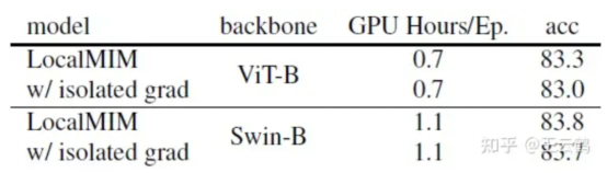 Table 4. Training LocalMIM with isolated gradients achieves similar performance with global backpropagation.