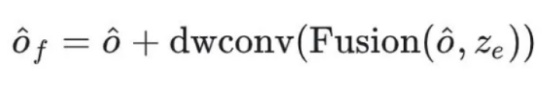 In this way, the size of the feature is the same as that of the global feature output by the encoder. Then, the feature after upsampling and the global feature output by the encoder are fused, and the residual input is added after feature interaction in depthwise convolution.