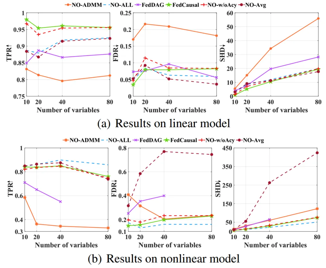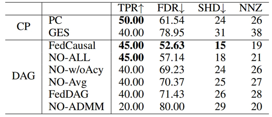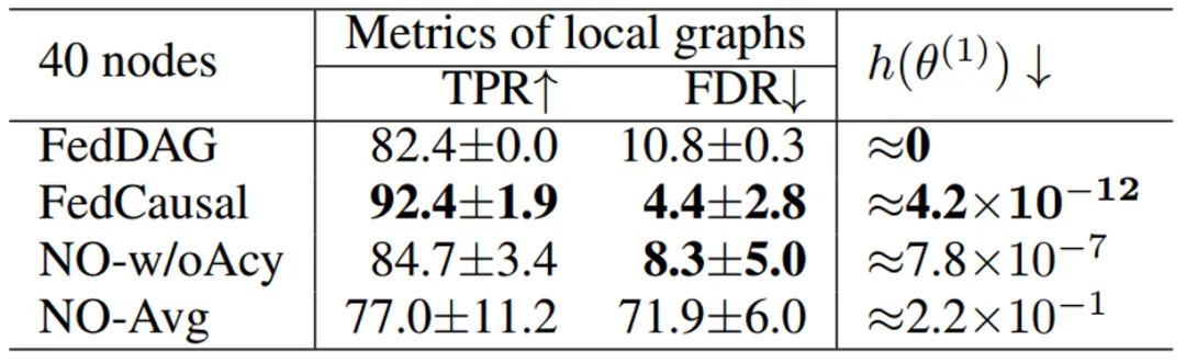 Table 1 Global acyclic constraint term and metrics of local causal graphs output by FedCausal