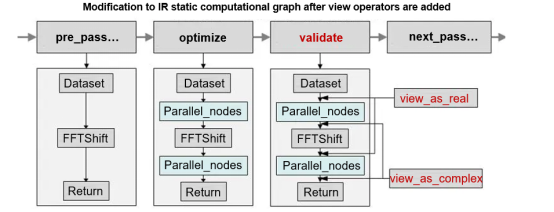 The concept behind solution 3 is essentially identical to that of solution 2; however, the implementation specifics vary significantly. In solution 2, the labeled type of data passed to communication or redistribution operators differs from the actual type of data, which introduces certain uncertainty. But if we display the conversion operation explicitly, namely adding a type conversion operator before the communication operator and including a type conversion-back operator after the communication ends, we can ensure that the input of each operator on the computational graph matches the output of the previous operator correctly. We have enhanced MindSpore by introducing the view_as_real and view_as_complex operators, modifying the computational graph, and inserting view nodes. This approach ensures that the entire tensor redistribution process uses the Float32 type for computations. Upon completion of computations, the data type is converted back to Complex64 before being handed over to scientific computing operators.