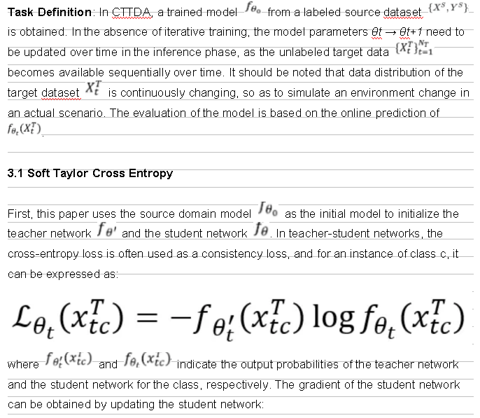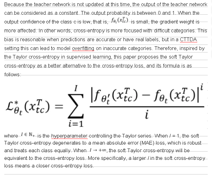 (b) During CTTDA, some difficult samples may deviate from the source model. By assigning lower weights to these samples, the possibility of catastrophic forgetting can be reduced. This paper uses the output entropy of the teacher network as an estimate of the sample uncertainty: