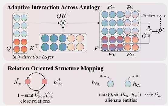 Previously, by designing an analogy prompt template, the analogy example and analogy problem-answer pair were concatenated and fed into the Transformer model, where the two parts interact to a certain extent during attention calculation. However, the analogy example is crucial for predicting analogy answers, but conversely, the analogy problem-answer pair may provide little help for modeling analogy examples. Moreover, the help provided by analogy examples varies in different cases. Therefore, the paper uses an adaptive association gate to adjust the degree of interaction between the two parts during attention calculation, breaking down the attention calculation process: