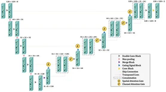 Figure 2 Architecture of a U-Net with the attention mechanism