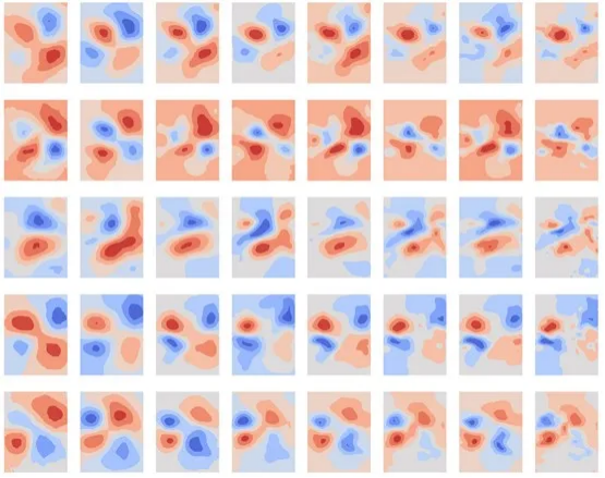 Currently, Cascade-Net has been open sourced in MindSpore Flow. At the same time, the application cases of Cascade-Net in the prediction of the fluctuating velocity field of subcritical, critical, and supercritical cylinders are publicized as well. The following figure shows the predicted values (U) generated by the network and actual values of the velocity field at each scale. One row is a sample. Two neighboring graphs forms a pair and there are four pairs in a row. The left graph in a pair is the predicted value by the network, and the right graph is the true value. The scales decrease from left to right.