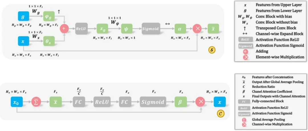 Figure 3 Schematic diagram of a spatial attention gate S and a channel attention gate C