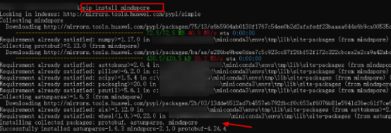 pip install mindspore --trusted-host https://mirrors.huaweicloud.com -i https://mirrors.huaweicloud.com/repository/pypi/simple