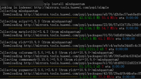 pip install mindquantum --trusted-host https://mirrors.huaweicloud.com -i https://mirrors.huaweicloud.com/repository/pypi/simple