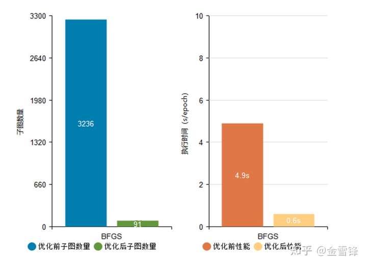BFGS网络子图数量由原来的3236个降低至91个,执行性能由4.9s/epoch优化至0.6s/epoch。