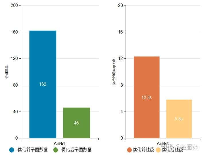 AirNet网络优化前后子图数量与执行性能对比