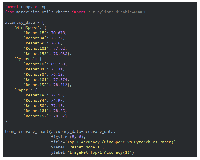 函数topn_accuracy_chart主要用于绘制在不同AI框架下,模型精度的对比。