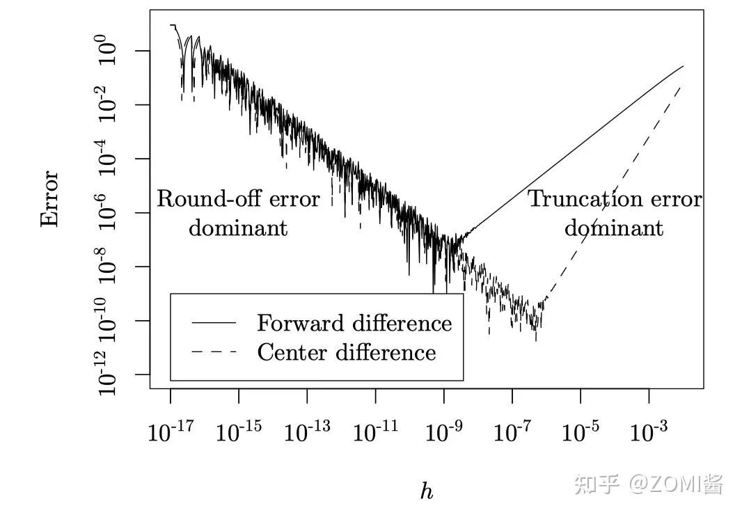 舍入误差(Round-off Error):在计算过程中出现的对小数位数的不断舍入会导致求导过程中的误差不断累积