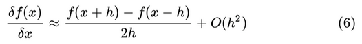 数值微分方式应该是最直接而且简单的一种自动求导方式,使用差分近似方法完成,其本质是根据导数的定义推导而来。