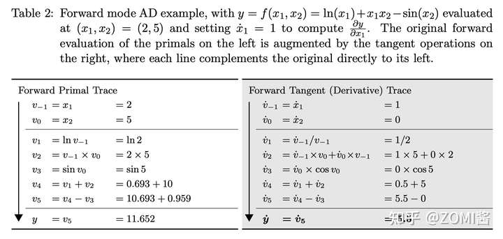 从计算过程来看啦,自动微分的前向模式实际上与我们在微积分里所学的求导过程一致。