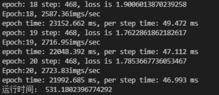 在使用示例代码运行20epoch加速前与加速后运行时间对比:
