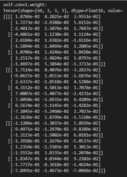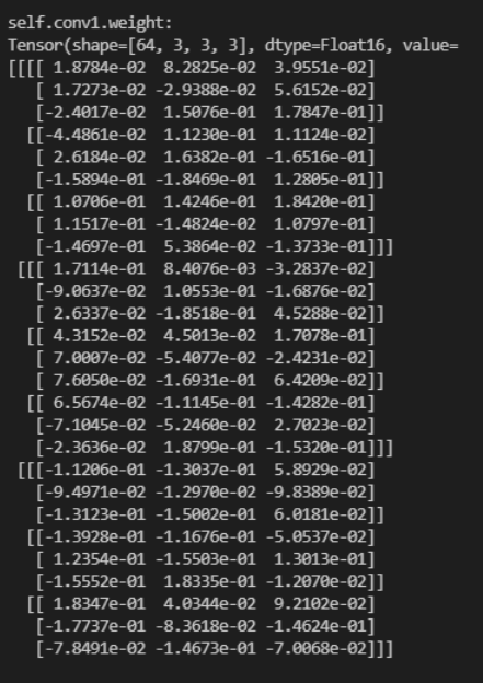 梯度更新的中心思想沿着loss函数梯度的方向更新权重以让loss函数的值最小化或accuracy最大化,在示例代码中使用requires_grad与stop_gradient方法实现禁止conv1层梯度更新。实验中conv1层中开始与结束时的权重变化如下图所示: