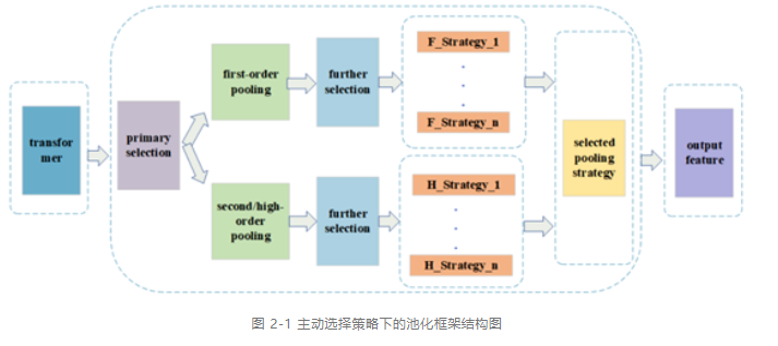 我们设计的基于主动视觉的池化层选择策略的优势是给池化层的信息筛选引入了随机机制,这样可以更有效的遍历输入数据的分布空间。需要注意的是,图 2-2 只是介绍了我们在一阶池化过程中的选择机制,对于二阶和高阶池化,其实也可以运用到我们的池化框架。