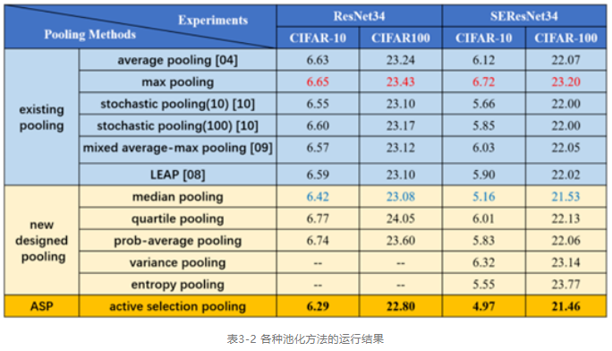 最后,我们针对基于池化框架所提出的池化方法进行了实验验证,如表3-2所示。