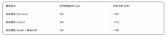 - 在Graph模式基础上,使用为融合优化的Cell(Conv2dBnAct)构建模型,性能进一步提升了约30%。这证明了积极的模型构建方式能更好地释放硬件潜力。