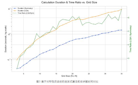 - **提出了对称性驱动的LQA改进算法:**成功将MindSpore Quantum应用于Z2格点规范场问题,通过对偶变换减少了变量数并降低了模型阶数。实验表明,改进后的方法相比朴素LQA算法,TTS(求解时间)提升了3倍以上,且在1000+节点规模下仍能在1秒内完成对称性计算。