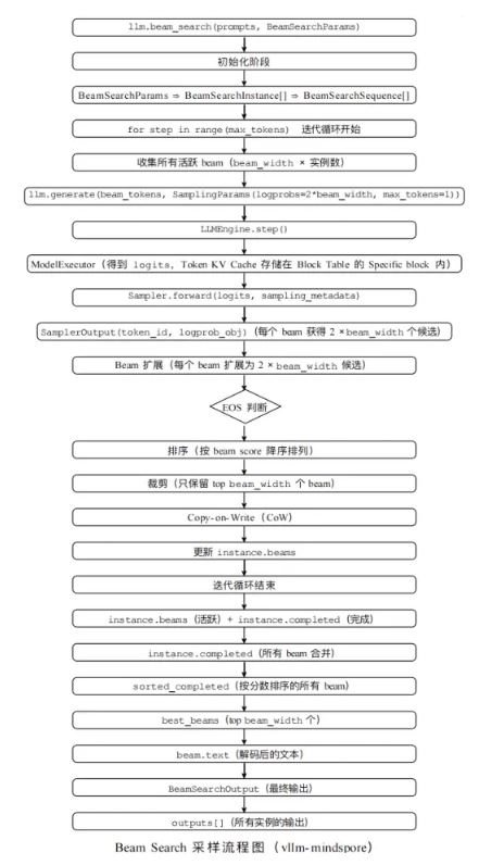 - 功能实现: 在 vLLM-MindSpore 中完整实现了 Beam Search 解码算法。