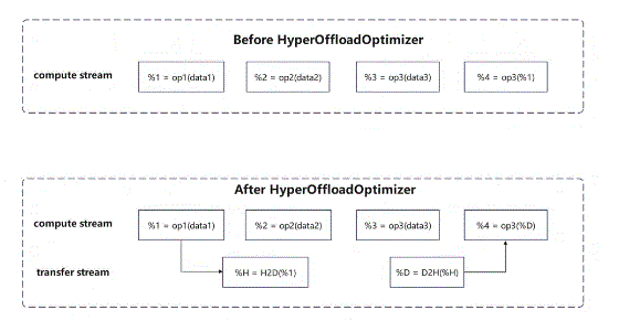 HyperOffloadPlan — 优化器输出结构,包含优化后的计算图、包含 Offload 节点的新执行顺序、以及 HyperOffloadOperations 操作管理队列。