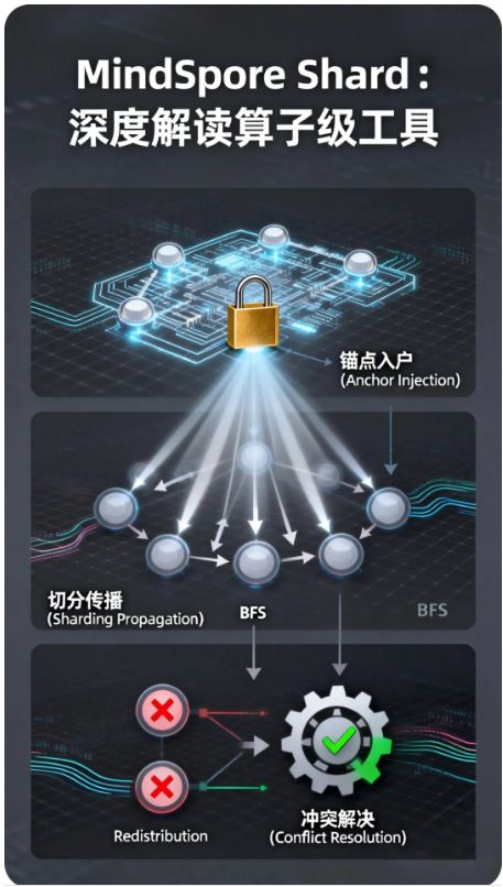 这是shard机制的核心魔法。系统不仅要满足你的要求,还要让整个图“跑通”。MindSpore使用了一种基于BFS(广度优先搜索)的传播算法来实现这一目标。