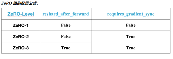 通过这两个接口的组合配置,可以达到ZeRO-1, ZeRO-2, ZeRO-3(默认) 级别的显存优化能力。