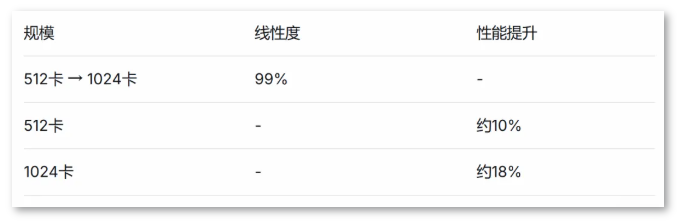 - 256 卡 → 1024 卡,多组配置线性度均超过 97%