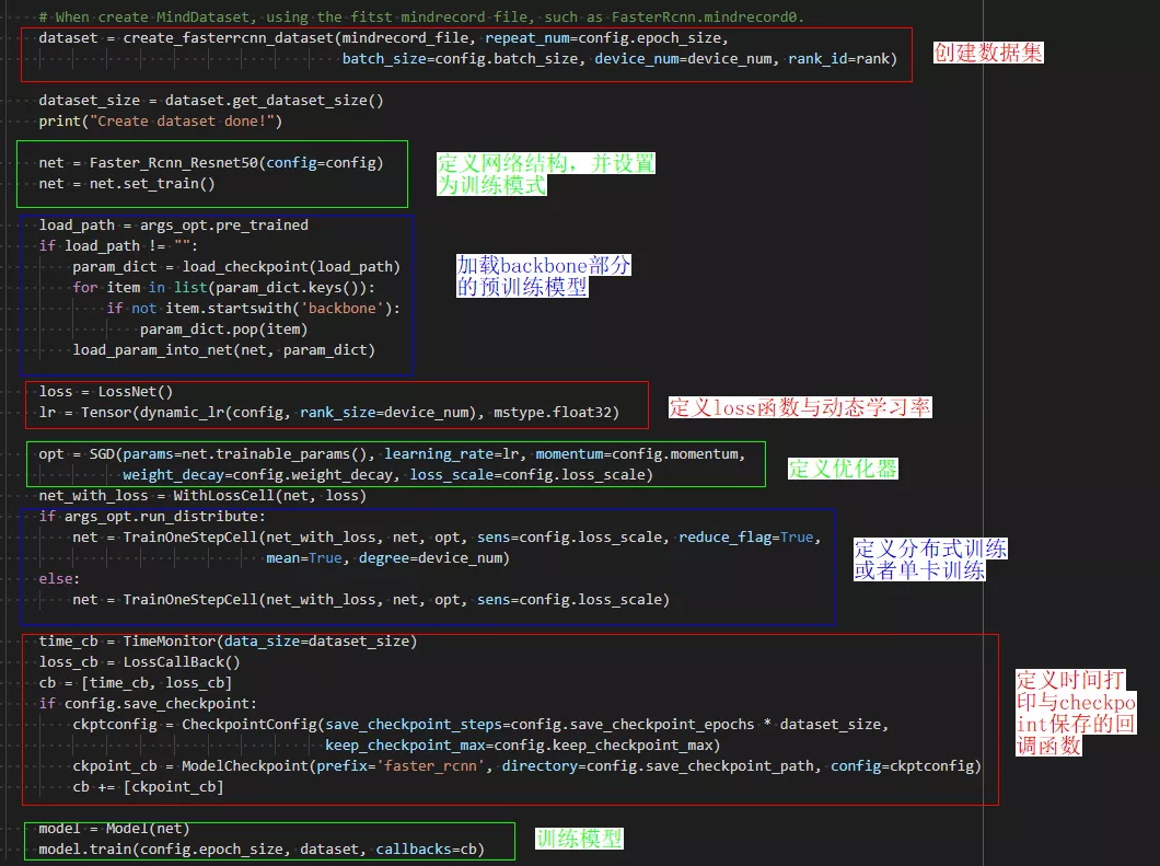 使用MindSpore来复现FasterRCNN这个经典的检测网络。这里仅列出了部分重要代码片段,完整代码请参考: