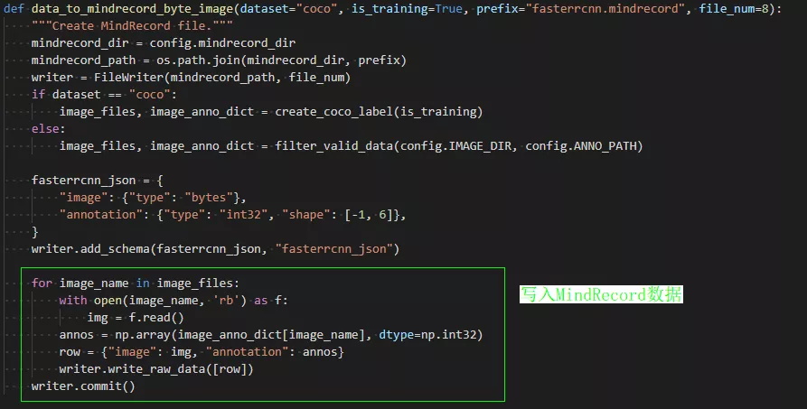 MindSpore中提供了MindRecord的接口来存储数据,方便用户使用,我们可以先把图片与标签数据生成MindRecord格式的数据,方便后续使用: