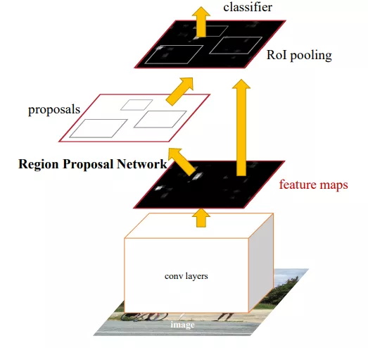 从图中可以看到,一张图片通过FasterRcnn网络,就可以获取到目标的位置与目标的类别,因此,我们可以将FasterRcnn应用到安防,自动驾驶等各种场景,让自动一定程度上减少人工的工作量。