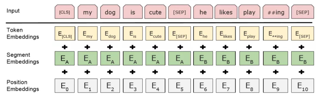 词向量、A/B句子信息、词位置信息