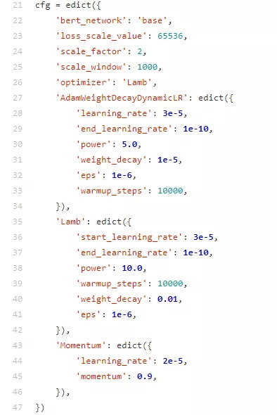下图所示是优化器相关配置信息,每一种优化器的学习率、衰减指数、warmup数等等。