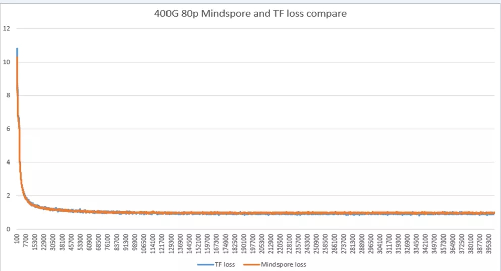 我们在wikipedia_cn_news数据集上(约400G)用80卡进行数据并行,进行Bert-large预训练,得到的loss曲线如下