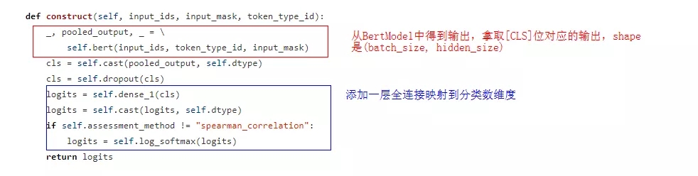 下游任务对应的网络结构代码存放在src/finetune_eval_model.py中,其中包括了三个类BertCLSModel,BertSquadModel和BertNERModel,分别对应分类任务、问答任务和命名实体识别任务。