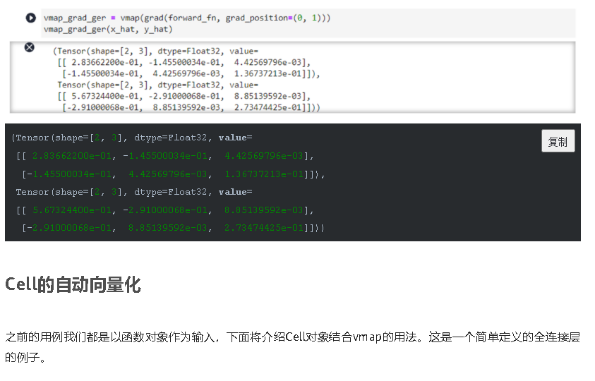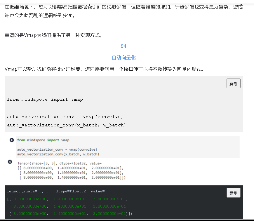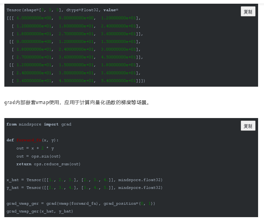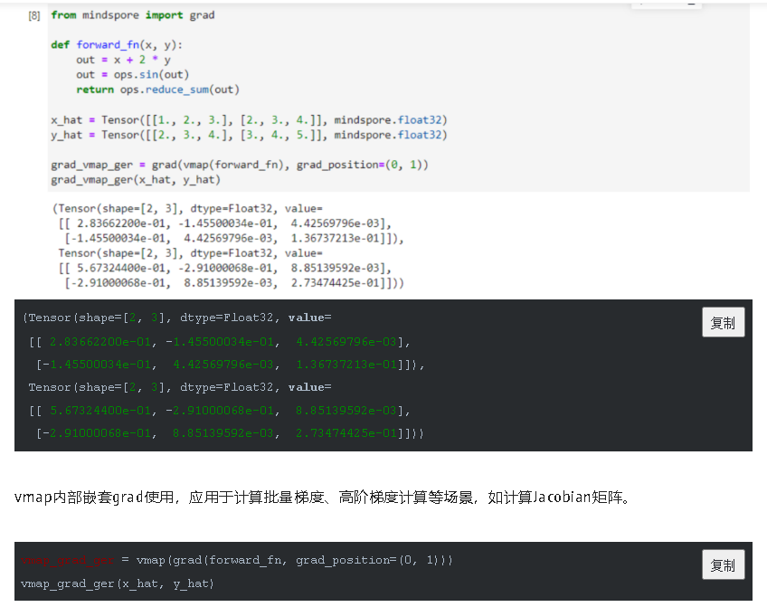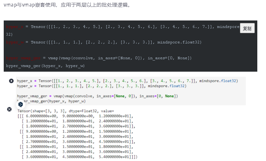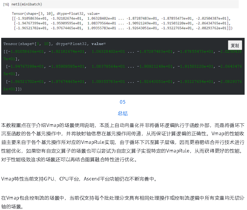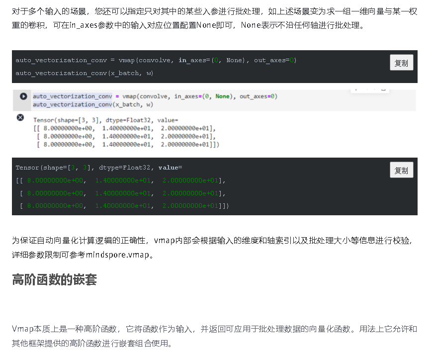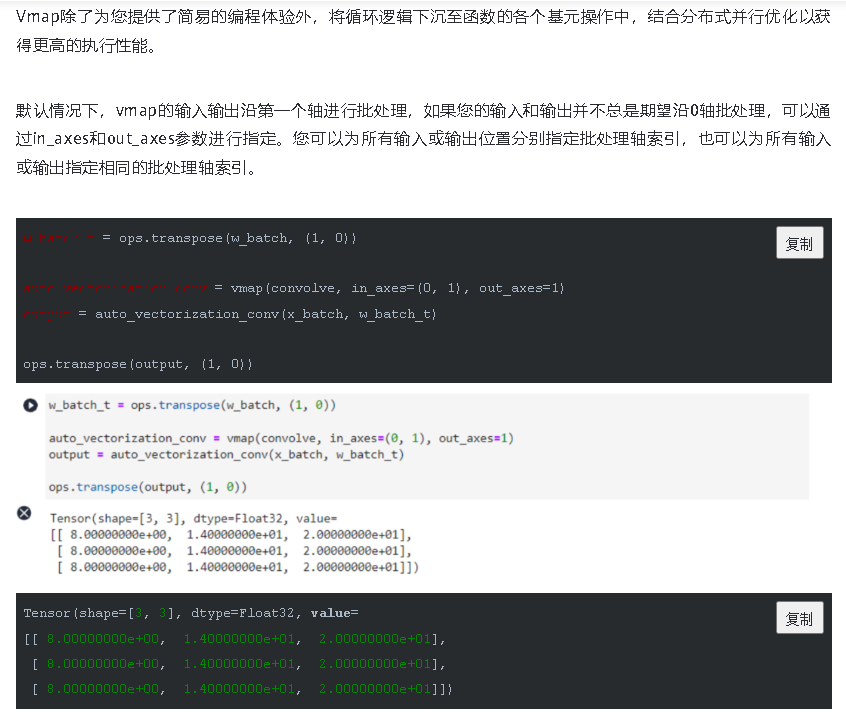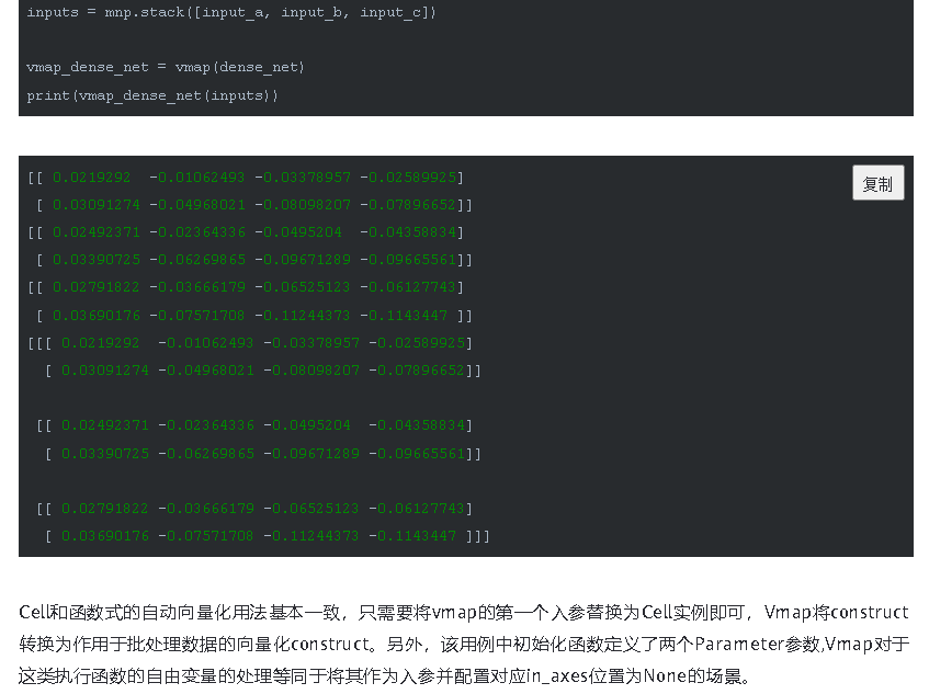注意,由于vmap的实现机制,会对设备运行内存有要求,使用vmap可能会占用更多内存,请用户根据实际场景使用。