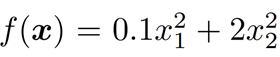 例如我们使用一个输入和输出分别为二维向量x=[x1,x2]⊤和标量的⽬标函数。