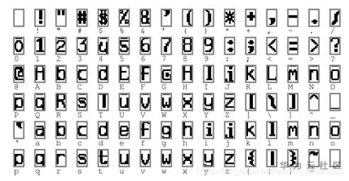 F6层:F6层是规格为84×1的一维向量,与C5层计算相同,也是通过全连接层计算得到。为什么要转成84个神经元向量呢,如下图中所示,是所有字符标准格式,规格为12×7.所以有84个像素点,然后使用F6层的向量与这些标准图计算相似度。