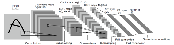 C3层:C3层的数组规格为16×1×10×10,从6×1×14×14卷积得到。输出通道数数改变,所以卷积数组需要16批卷积数组,每一批中有6个卷积核与输入通道对应,每一个卷积数组规格都是5×5,步幅为1。即卷积数组规格为16×6×5×5。