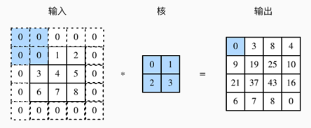 填充作用于输出数组的高和宽。这常用来使输出与输入具有相同的高和宽。