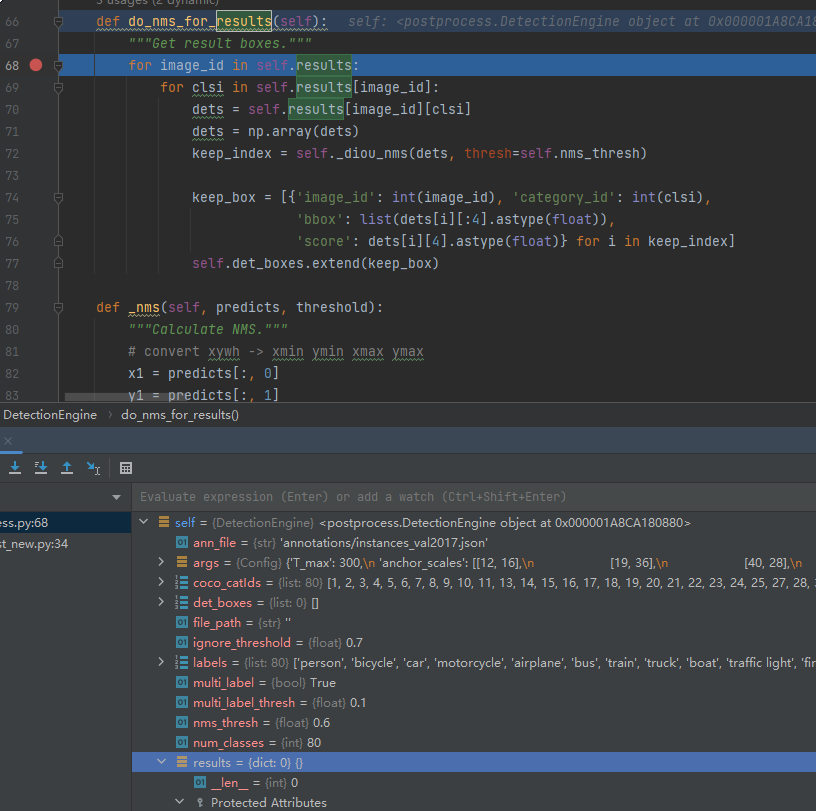 然后就是detect方法了,它是batch数据处理,我就只有一张图,就修改下相关代码。
