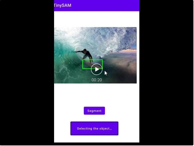 下面是demo效果展示,TinySAM在手机端侧可完成给定点或框作为prompt的自动分割功能。
